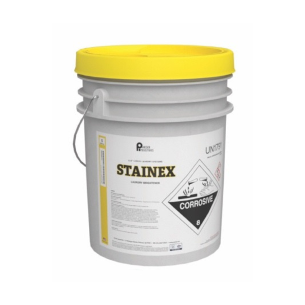 STAINEX is a 15% highly active stabilized liquid sodium hypochlorite (chlorine) bleach that removes stains and disinfects when used as directed by the Centers for Disease Control and Prevention (CDC).