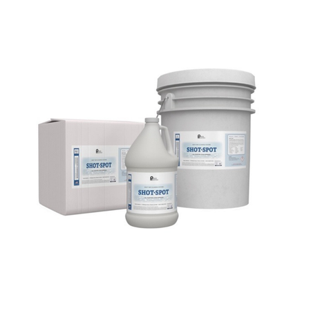 SHOT-SPOT is available in 6×1-pint and 4×1-gallon cases, 5-, 15-, and 55-gallon containers.